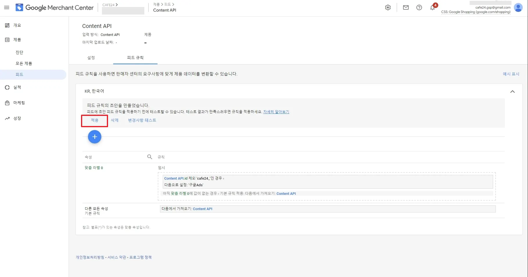 ⑤ 규칙 적용된 피드 확인 : 제품