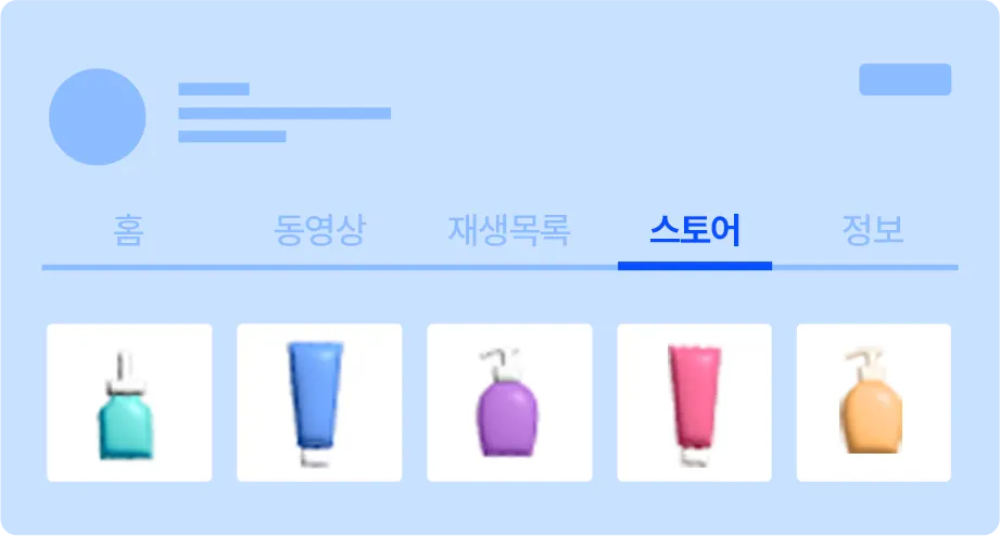 유튜브 채널 스토어 탭에 상품을 진열하세요!