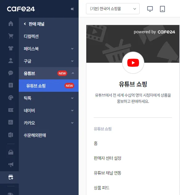 D2C 쇼핑몰 중 카페24에서만 유튜브 쇼핑 연동이 가능합니다.
