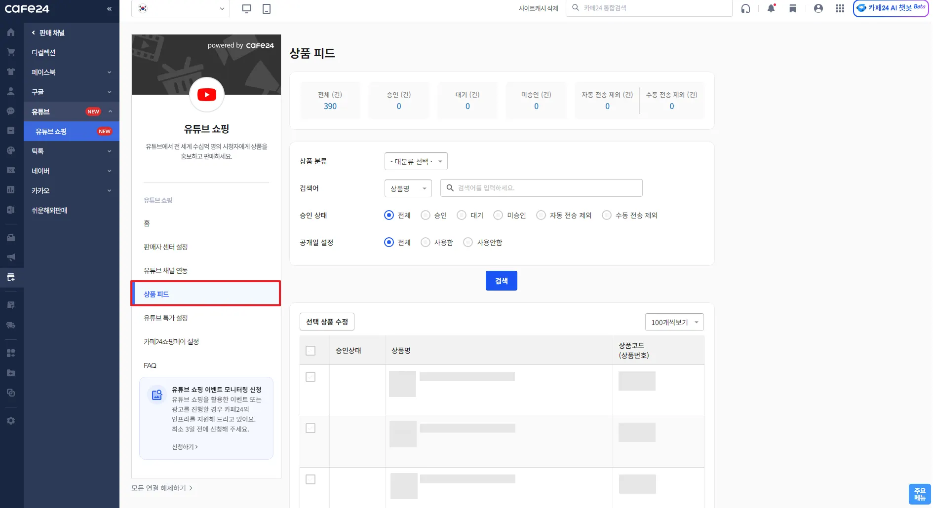 4) 상품 피드 메뉴에서 상품 승인, 연동 불가 사유를 확인해주세요.