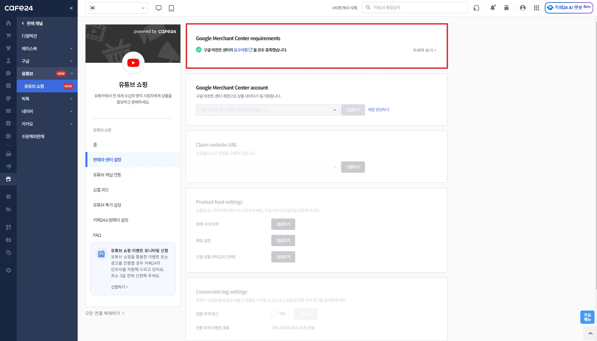 유튜브 쇼핑을 사용하기 위한 조건